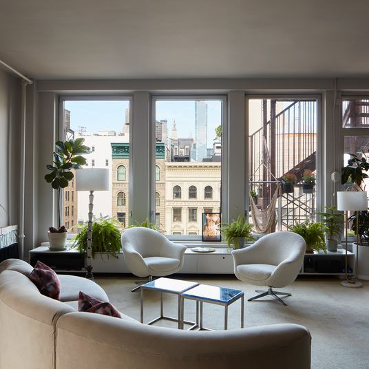 After lunch it was time for a client visit in Greenwich Village. The apartment—a one-bedroom with billion-foot ceilings, plantation shutters, and a fireplace—was the kind of charm-stuffed dream pad that makes a visitor feel wickedly covetous. A fact that’s unsurprising, since the client was Wendy Goodman, New York’s own design editor. Kondo voyaged inside and absorbed the overstuffed bookshelves, the antique tomato-velvet ottoman, the conch shells, and the silver urns. “At the moment, everything is a big mishmash,” Goodman explained.