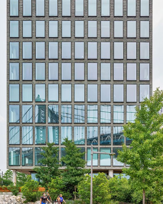 Many buyers seem to relish the contrast between the cacophony outside and the pin-drop-quiet atmosphere inside, impressed by the serenity that money can buy. And it’s not just Dumbo. On the approach to the Holland Tunnel in Tribeca/Hudson Square, you can find 565 Broome, a Renzo Piano–designed condo with a 55-foot indoor lap pool and not one but two curated libraries for residents. Extell, the developer behind One57, the tower that started Billionaires’ Row, built One Manhattan Square, a condo that looms over the FDR and the Manhattan Bridge. And then there’s the string of ultra-high-end condos that line the West Side Highway in lower Manhattan. The Richard Meier buildings, anointed by celebrities like Calvin Klein and Nicole Kidman in the early aughts; Superior Ink, another celebrity favorite; and 150 Charles, where just last month, the penthouse sold for $52 million.